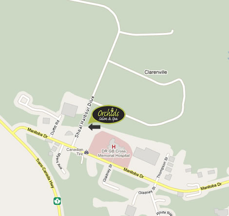 Orchids Salon and Spa is conveniently located in the Town of Clarenville, on Shoal Harbour Drive. Feel free to use the map provided, or we would be happy to email you directions from your home to ours ... see you then
